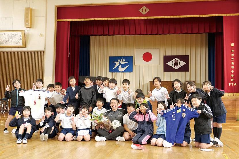 授業を受けた児童の弘弥真斗さんは「みんなでサッカーをして楽しかった。YouTuberを目指しているので楽しみながら頑張っていく」、曽田翔一朗さんは「諦めずに頑張れば達成できるとわかった。習っているスイミングは嫌だったけど、せっかくやるならプロを目指す気持ちで取り組みたい」と前向きな気持ちを語った。