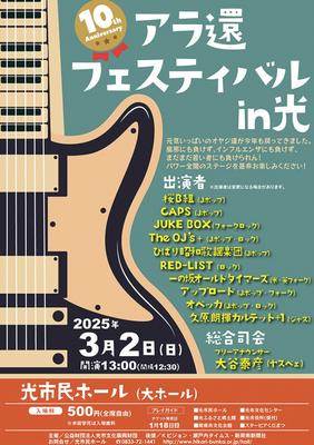 第10回アラ還フェスティバル in 光(新周南新聞社など後援)が3月2日(日)午後1時から、光市民ホール大ホールで開かれ、10バンドが出場する。市文化振興財団...