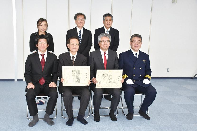 徳山海上保安部は3月26日、光市の県スポーツ交流村(河口郁史所長)で海中に車ごと転落した男性を救助した同施設の職員の福田裕司さん(63)、中村真也さん(35)...