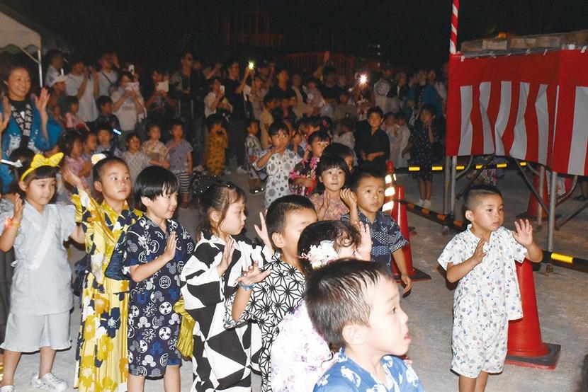 光市の東光保育園(渡邊法善園長、230人)は19日、東光夏祭りを開き、園児の父母や卒園生も参加して盆踊りなどで盛り上がった。 2部構成で、前半の第1部は出店...
