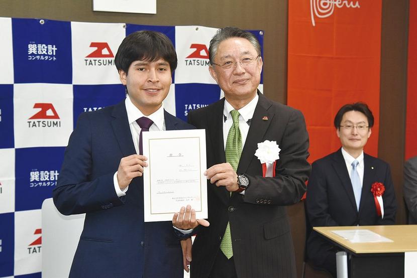 光市光ケ丘の㈱巽設計コンサルタント(光井謙二代表取締役)は15日、ペルー出身で山口県海外技術研修員として昨年8月から半年間、道路の設計などを学んできた前坂・ヒ...