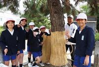 【下松】「みんなで守ろう、いつまでも」 下松小児童”鼎(かなえ)の松”こも外す