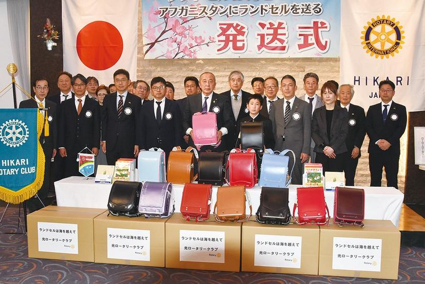光市の光ロータリークラブ(RC=加藤正道会長)は23日、ホテル松原屋であった例会の席上で「アフガニスタンにランドセルを送る発送式」を開いた。今春に同市内小学校...