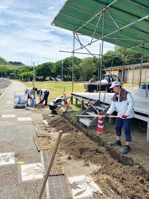 今月20日(土)の海開きを前に、山口県周南市の三和建設㈱(原田寿興社長)の社員7人が8日、同市の長田海水浴場の側溝にたまった土や生い茂った草を取り除いた。 ...