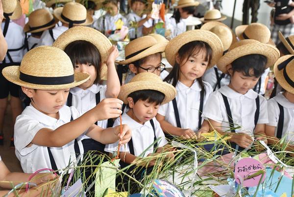 山口県周南市の徳山動物園(長畠和彦園長)の七夕の飾りつけ会が6月28日に中央テラスで開かれ、河原幼稚園(金子清学園長、232人)の年長組の園児80人が願い事を...