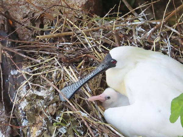【周南】[徳山動物園]クロツラヘラサギ3羽孵化 野鳥観察所で子育て