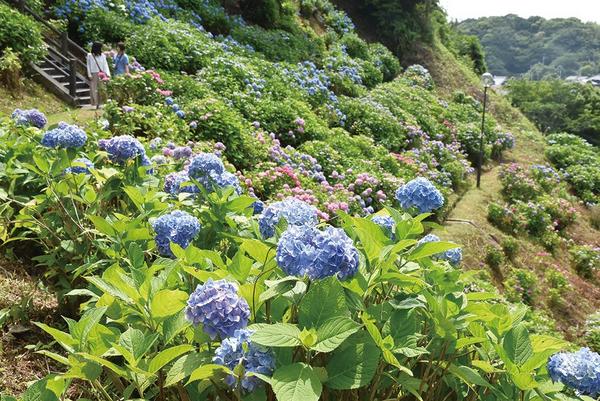 【光】1万5千株のアジサイ 光スポーツ公園で見ごろに