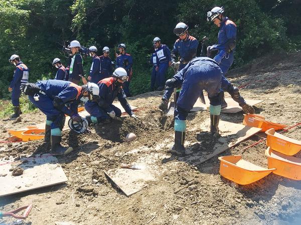 【周南】土砂崩れ、1人生き埋めを想定 市消防本部が防府市と合同訓練