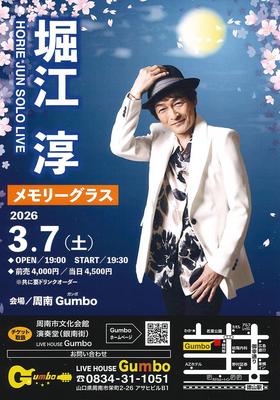 【周南】堀江淳ライブ 3月7日・周南Gumbo