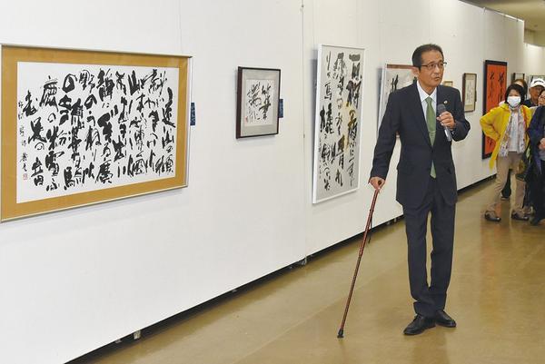 【周南】揮毫や作品解説 書游(しょゆう)会展が盛況