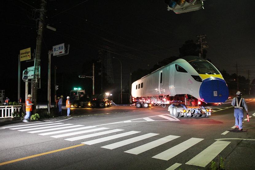 運送される英国向け鉄道車両=昨年7月7日、下松市提供