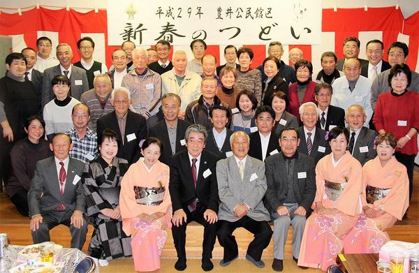 下松市の豊井地区自治会連合会(清木健一会長)の初めての“豊井公民館区新春のつどい”が13日、豊井公民館で開かれ、自治会長や民生児童委員、とよいまつりなど3つの...