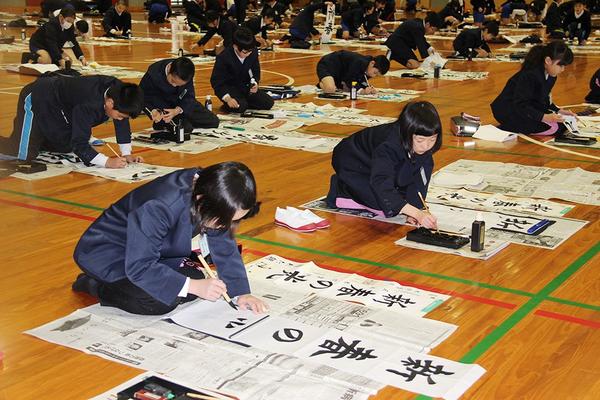 下松市の下松小(藤本哲城校長、724人)で11、12日、書き初め大会が開かれ、4、5、6年生が筆で条幅紙に向かった。 5年生は11日、4、6年生は12日に取...