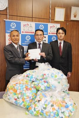 【下松市】64万4,000円から各市社協などに 日立労組とハイテク労組 ペットボトルのふた20キロも