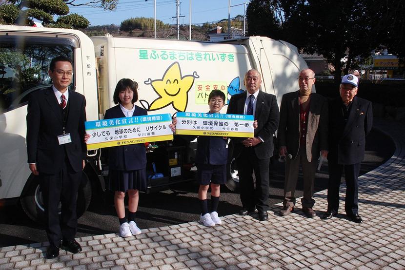 下松市の下松ライオンズクラブ(竹尾紳一郎会長、29人)は15日、久保小五年生から募集した環境標語のうち2点を清掃車用のステッカーにし、32枚を作って市に贈った...