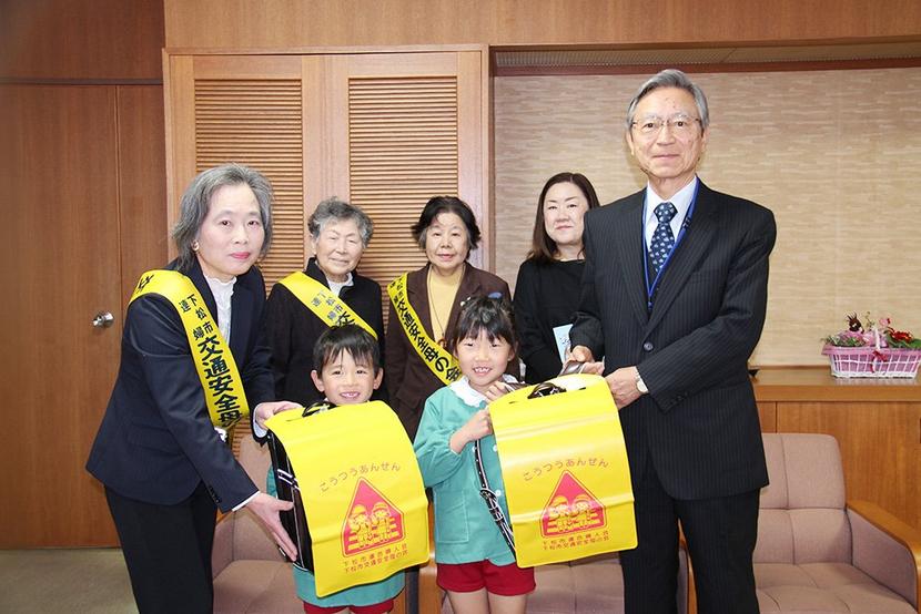 下松市連合婦人会(古田尊子会長)と市交通安全母の会(古田会長)は今春、市内の小学校に入学する新入児に交通安全のためのランドセルカバーを贈り、15日、市役所の教...