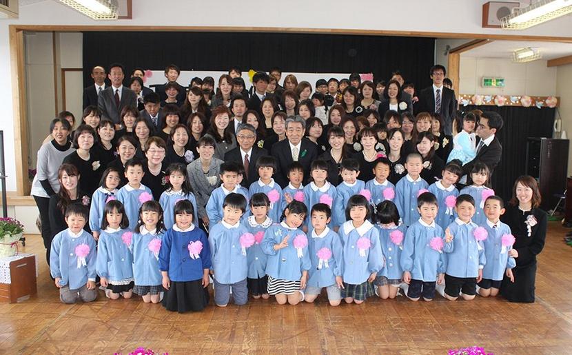下松市の市立保育園の民営化で閉園する大手町の中央保育園(岡田恵美子園長、122人)の閉園式が25日、卒園式に続いて開かれ、この日卒園した園児らが出席して園舎に...