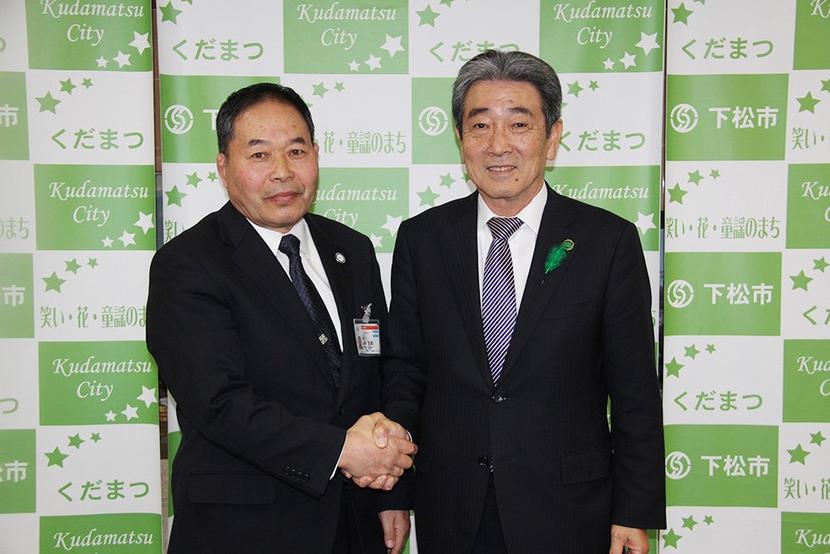国井市長と握手する山縣さん