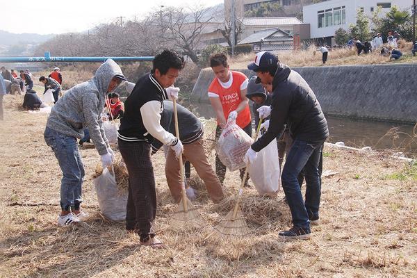【下松市】花見前に切戸川でクリーン作戦 フィリピン人研修生90人も