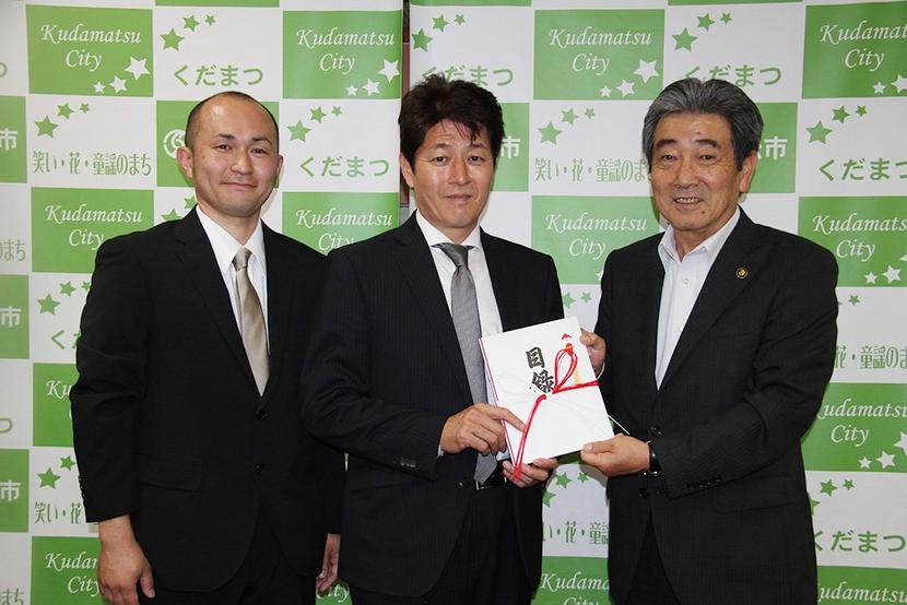 下松市望町の自動車販売整備業、ヴィーテック(相本直樹社長)は9日、市に「子育てと福祉の充実に使ってほしい」と77万9700円を贈った。 同社は相本社長(45...