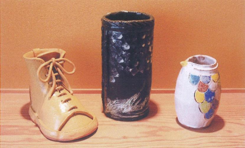 生徒が制作した花入れ