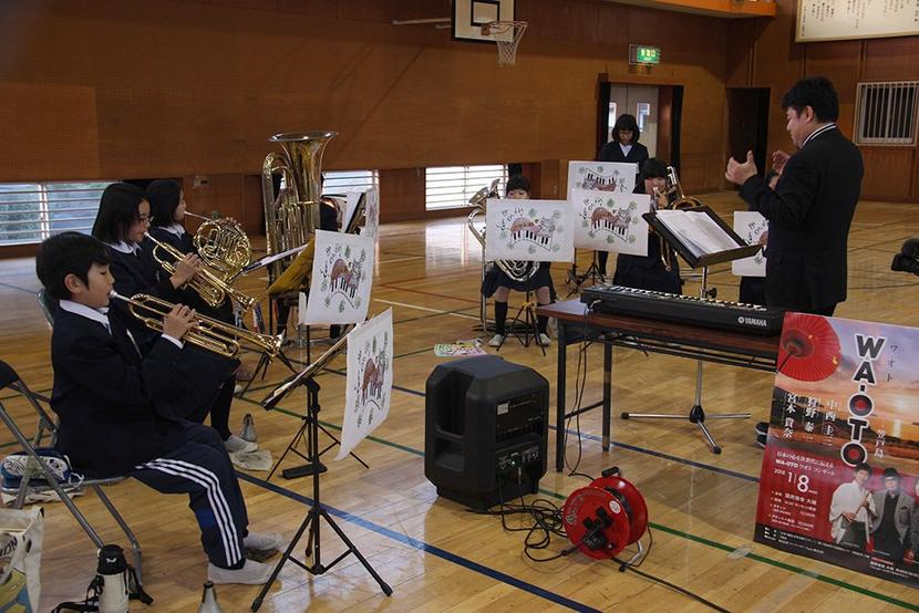 下松市笠戸島の国民宿舎大城(有吉良美支配人)で一月八日に夕日をバックに開かれるコンサート「WA―OTO(ワオト)in笠戸島」に花岡小吹奏楽部(国本未菜実部長)...