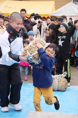 下松市中市の妙見宮鷲頭寺(杉原孝明住職)で7日、恒例の大黒市が開かれ“米俵かつぎ”には大人の女性や子ども約200人が挑み、賞品の新米一キロやくだまつ健康パーク...