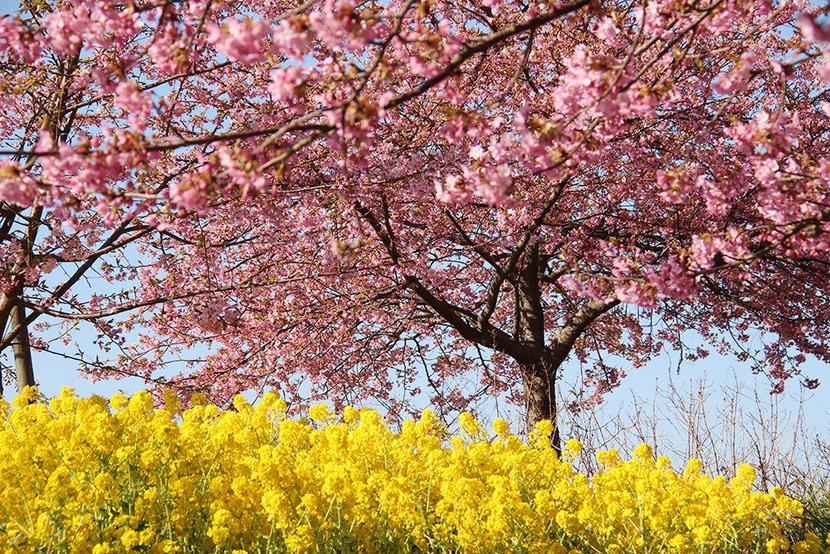 満開の河津桜と菜の花