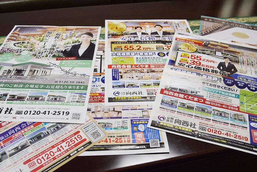葬祭場の向西会館くだまつ、とくやま、しんなんよう、くまげを運営している下松市南花岡の向西社(小林正宜社長)は2年ほど前から折り込みなどのチラシのデザインを複数...