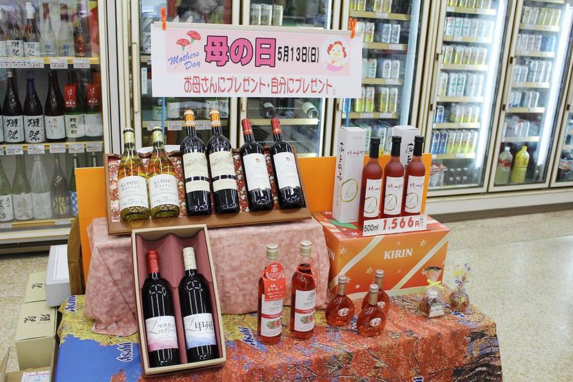 下松市古川町の下松駅北口そばにある60年続く老舗の酒店、スミダ酒店は13日の「母の日」を前に贈り物にぴったりのワインをそろえている。 お勧めは山梨県産の甲州...