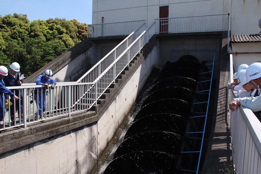 ポンプの作動状況を視察する参加者=竹屋川ポンプ場