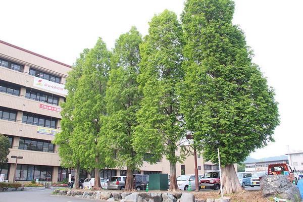 【下松市】メタセコイア5本伐採 市役所前の15メートルの大木倒壊対策で