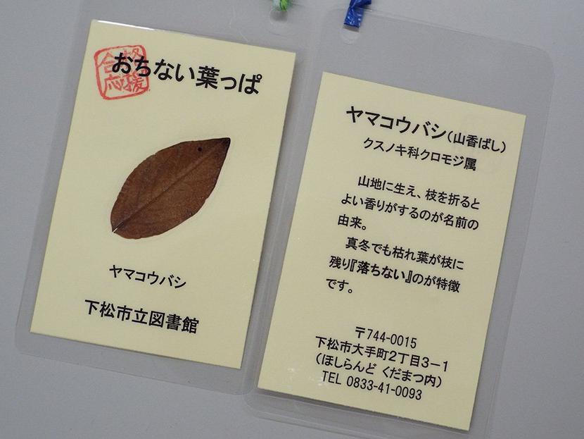下松市図書館(長弘純子館長)は受験生を応援しようと冬も葉が枝に残って“落ちない”ヤマコウバシの葉をラミネート加工したしおり500枚を開館記念日の7月3日午前9...