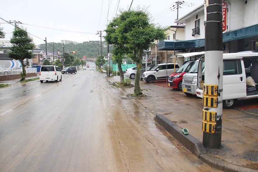 泥に覆われた市道=青柳