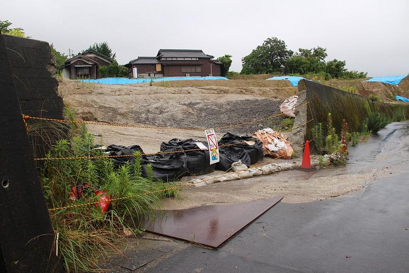土砂が流出した工事中断中の造成地=寺迫