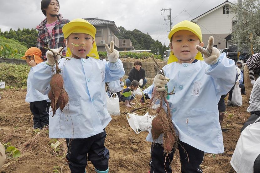 下松市の学校法人四恩学園(見山任昭園長)が運営する末武上の四恩幼稚園と生野屋西の第2四恩幼稚園の全園児計203人が19日、花岡小裏のサツマイモ畑で保護者と一緒...