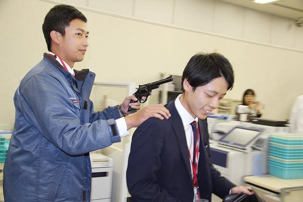 [下松署]行員もけん銃手に犯人役 山口銀行下松支店で防犯訓練