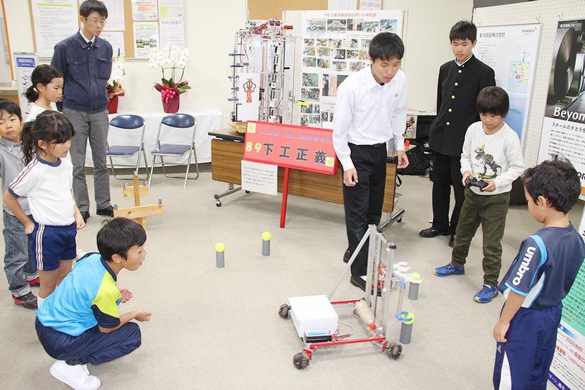 ロボットを操作する下松工高生