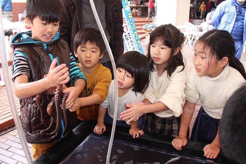 魚つかみ取り大会の子どもたち