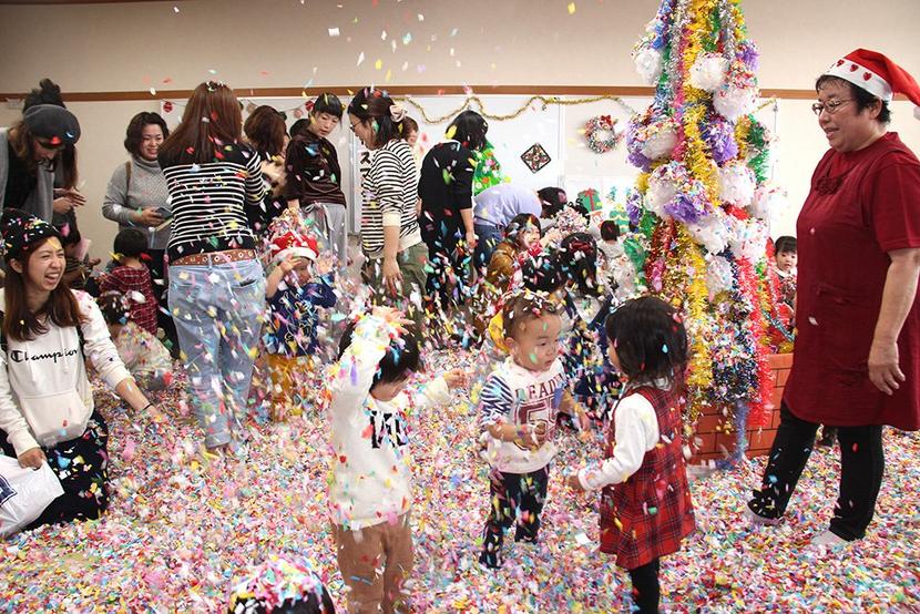紙吹雪で遊ぶ子どもたち