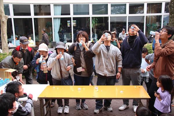 下松市笠戸島の笠戸島ハイツ中庭で2日、第12回まるごと笠戸島inハイツが開かれ、先着150人に魚汁と新米のご飯が振る舞われて約800人でにぎわった。 プチ海...