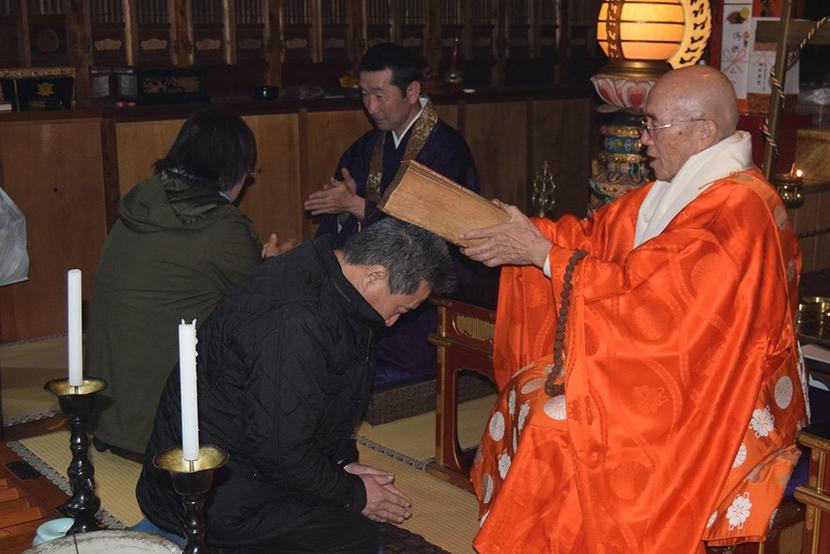 下松市花岡のあかい坊(三池孝道住職)は14日、厄払いや家内安全などを祈願する大護摩供養を営み、400人でにぎわった。 満席となった本堂で法要があり、三池住職...