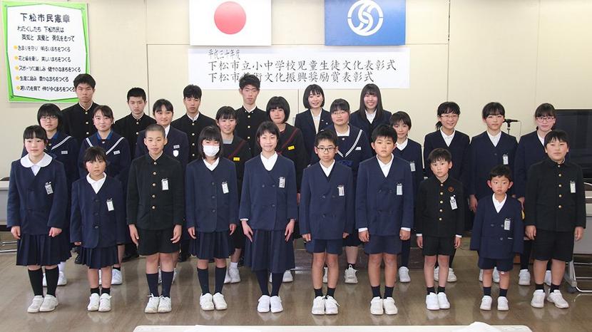 下松市教委の小中学校児童生徒文化表彰式と高校生の芸術文化振興奨励賞の表彰式が20日、市役所5階会議室で開かれ、児童生徒文化表彰は小学生14人、中学生6人、1団...