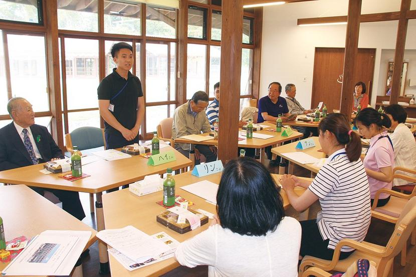 昼食会で発表するベトナム人の技能実習生