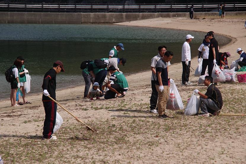 下松市の日立製作所笠戸事業所(川畑淳一事業所長)の社員と関連企業の従業員や家族計約100人が6日、笠戸島のはなぐり海水浴場で清掃奉仕活動を展開し、浜はすっかり...