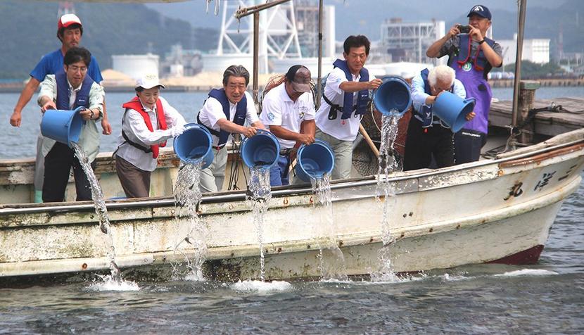 共同漁業権第77号海域が設定されている下松市と周南市の種苗放流PR事業が7月29日、下松市笠戸島の市栽培漁業センターの沖合いの笠戸湾で開かれ、ヒラメ、トラフグ...
