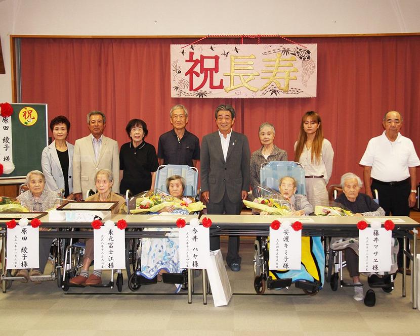 成幸苑の長寿者や家族と国井市長