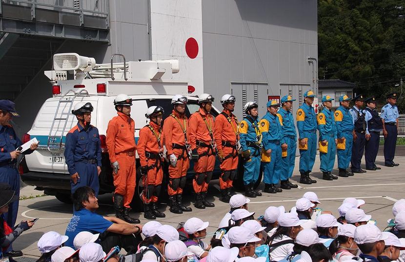 参加した下松市消防本部と県警機動隊