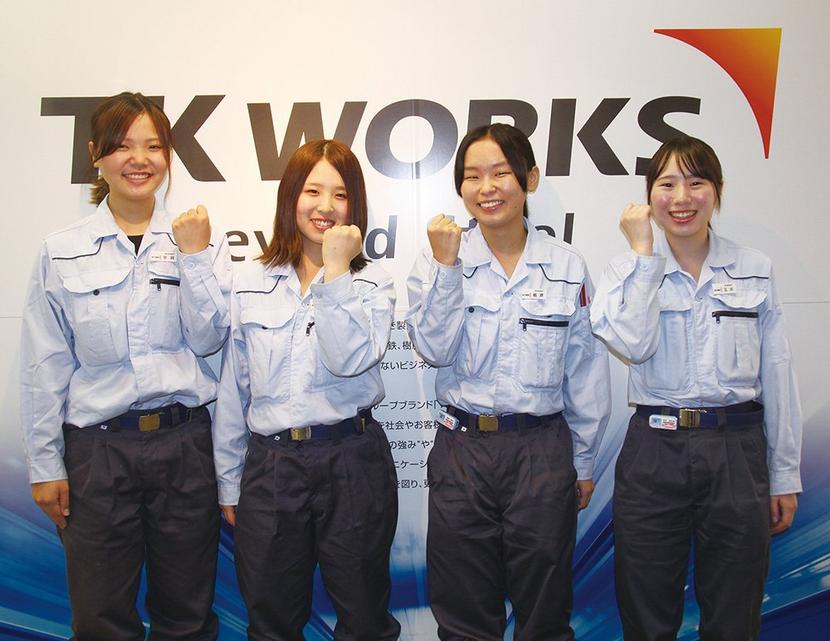 4人の活躍は同社の社内報の「鋼鈑NEWS」2019年秋号に特集記事として掲載されている。同社は次年度以降も製造現場の女性交代社員を採用する予定で、次に続く人たちの励みや目標になりそうだ。