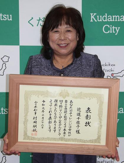 諸分野で活躍する女性を顕彰する県女性活躍推進知事表彰「女性のチャレンジ賞」を下松市林業研究会婦人部長、近道(こんどう)千佐子さん(64)が受賞した。8日は市役...